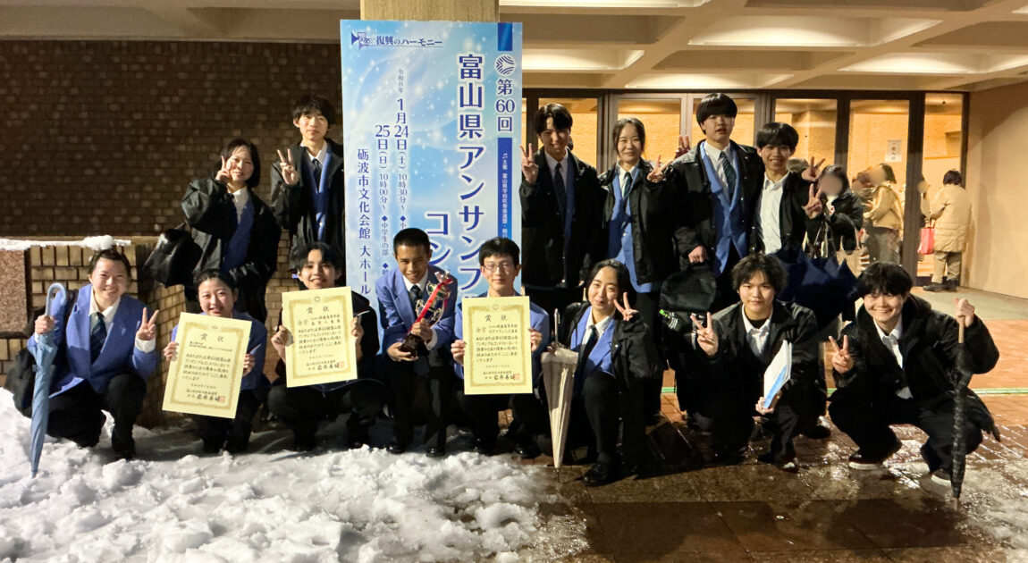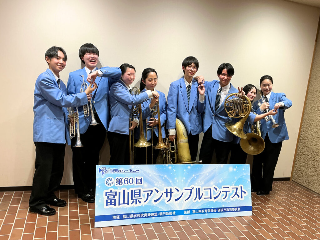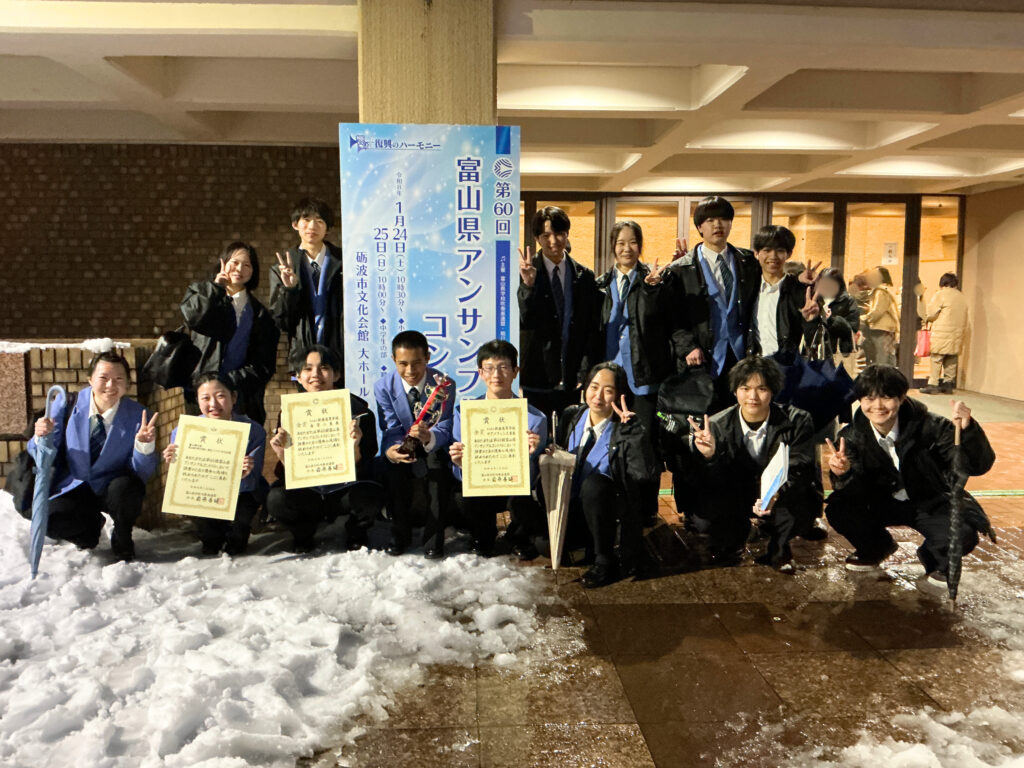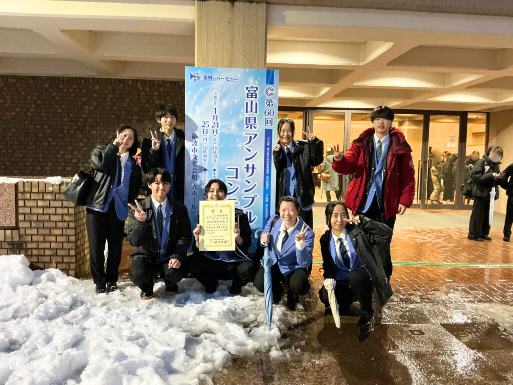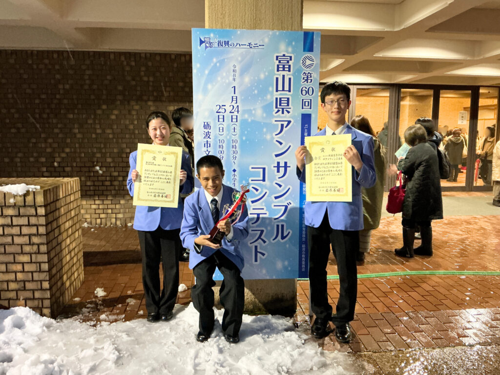 1月24日(土)に砺波市文化会館にて、第60回富山県アンサンブルコンテストが開催され、本校吹奏楽部の金管8重奏とサクソフォン3重奏が出場しました。
