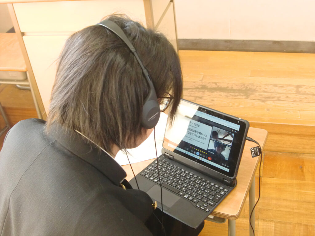 3月11日(水)に2年普通科英語系の生徒が、台湾の百齢高校の生徒の皆さんと、今年度2回目となるオンライン交流を行いました。
