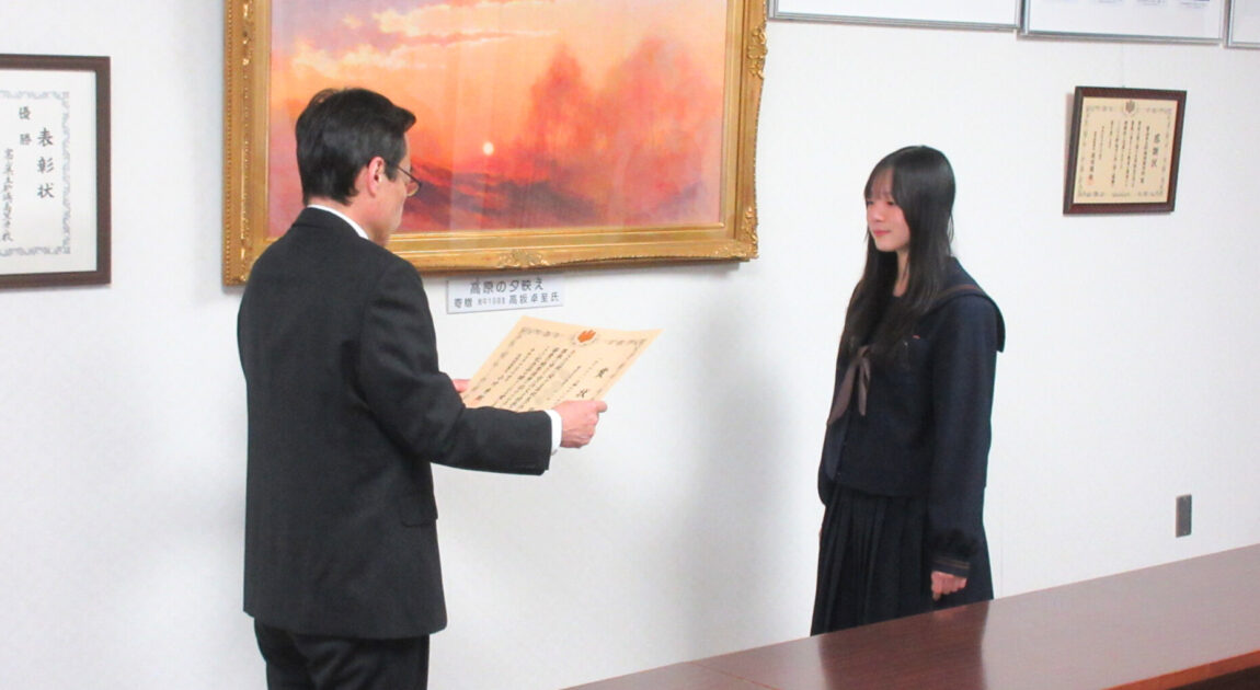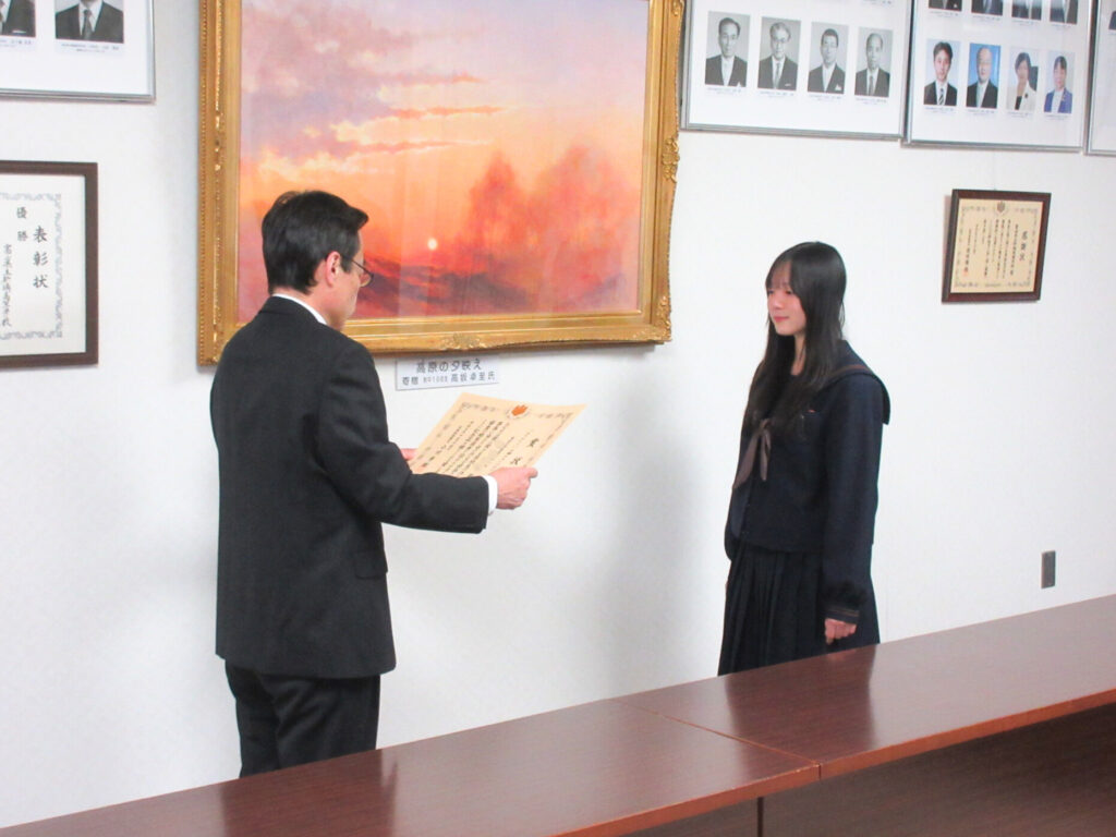 11月14日(金)には本校校長室にて、高岡税務署長による表彰式が行われました。