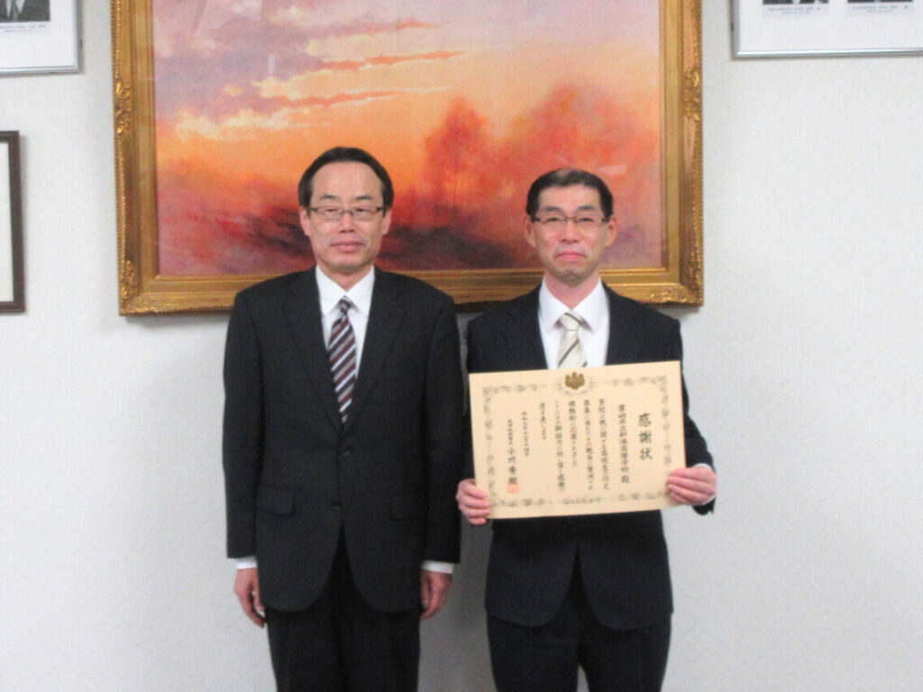 また、本校のこれまでの取り組みが評価され、高岡税務署長より感謝状をいただきました。