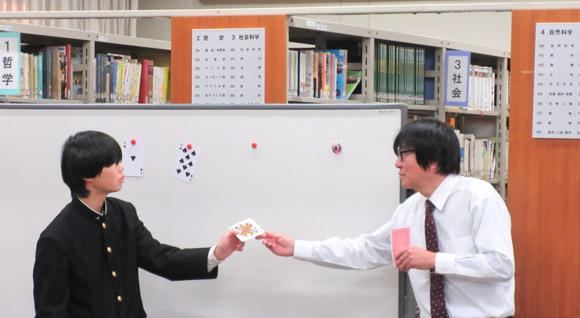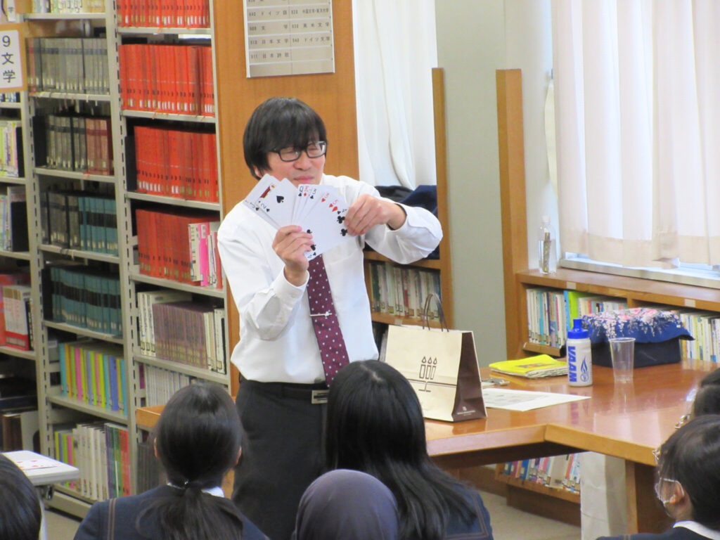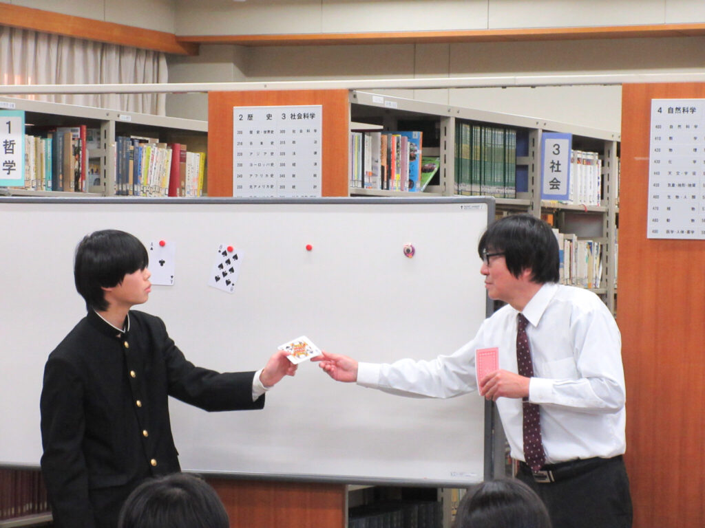 1月16日(金)の放課後に本校図書室にて、講師に本校の日下先生を迎え「Mathematics and The Magic and The Music」という演題にて、講演していただきました。