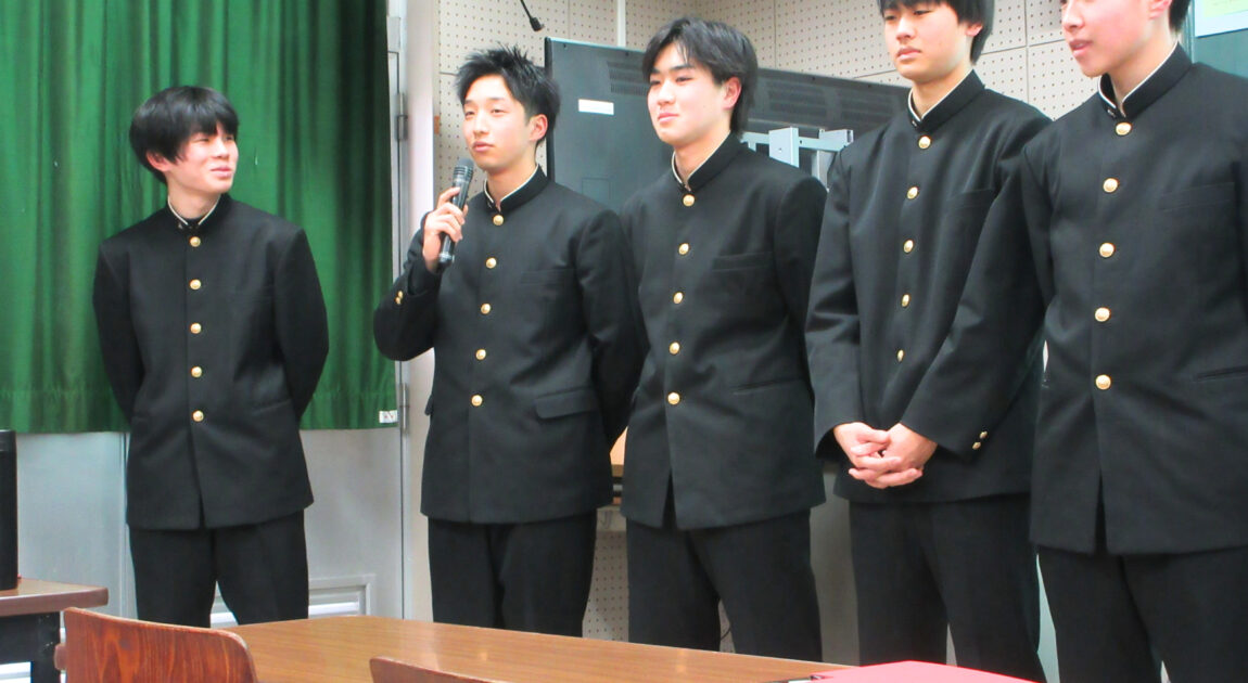 2月10日(火)の6限に本校視聴覚室にて、3学年商業科の生徒が1・2学年商業科の生徒に対し、課題研究発表会を行いました。